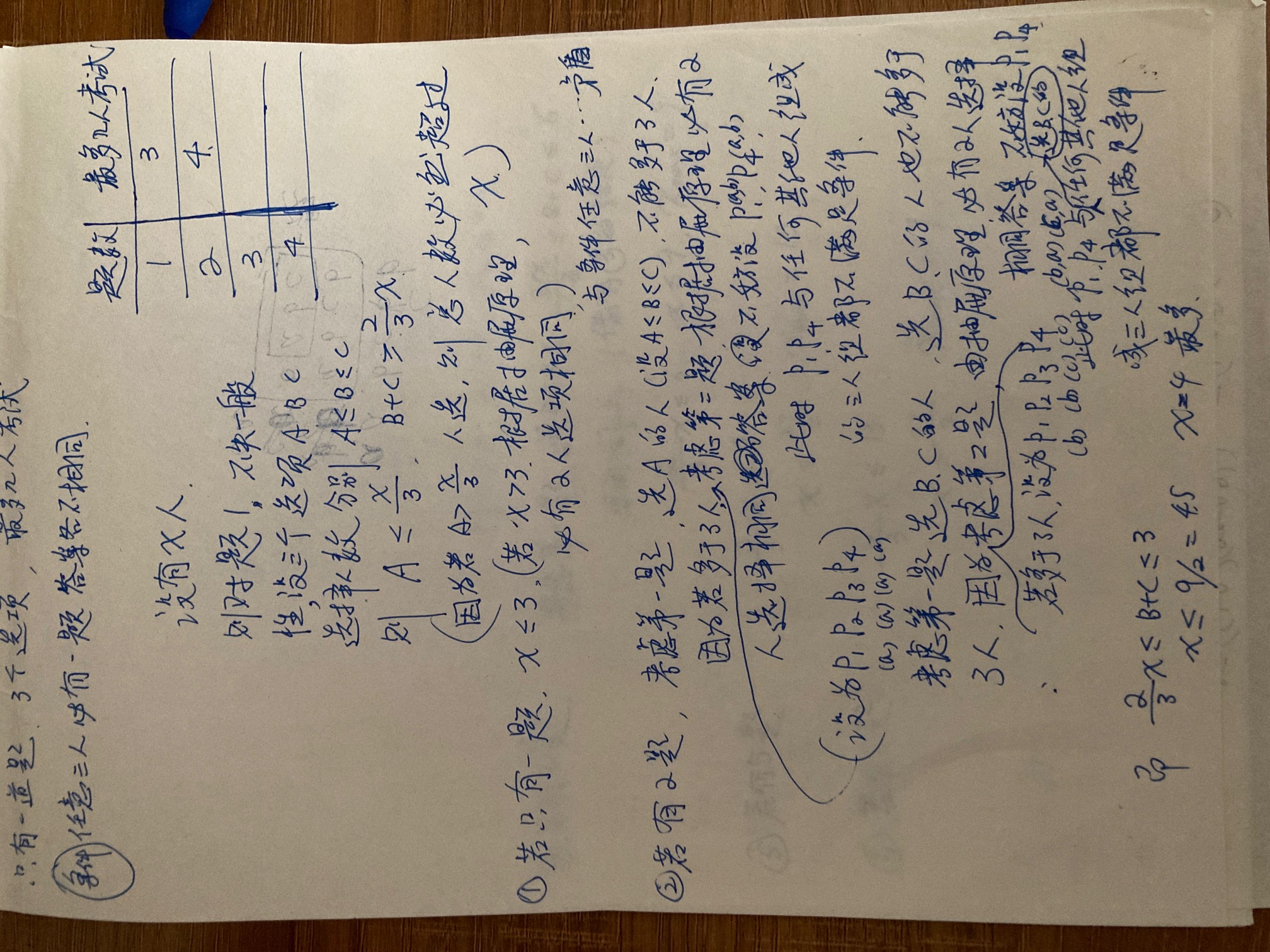 因为1、2、n都有败场,那么全胜的人必定是3或4,我们假定是3全胜,4全败